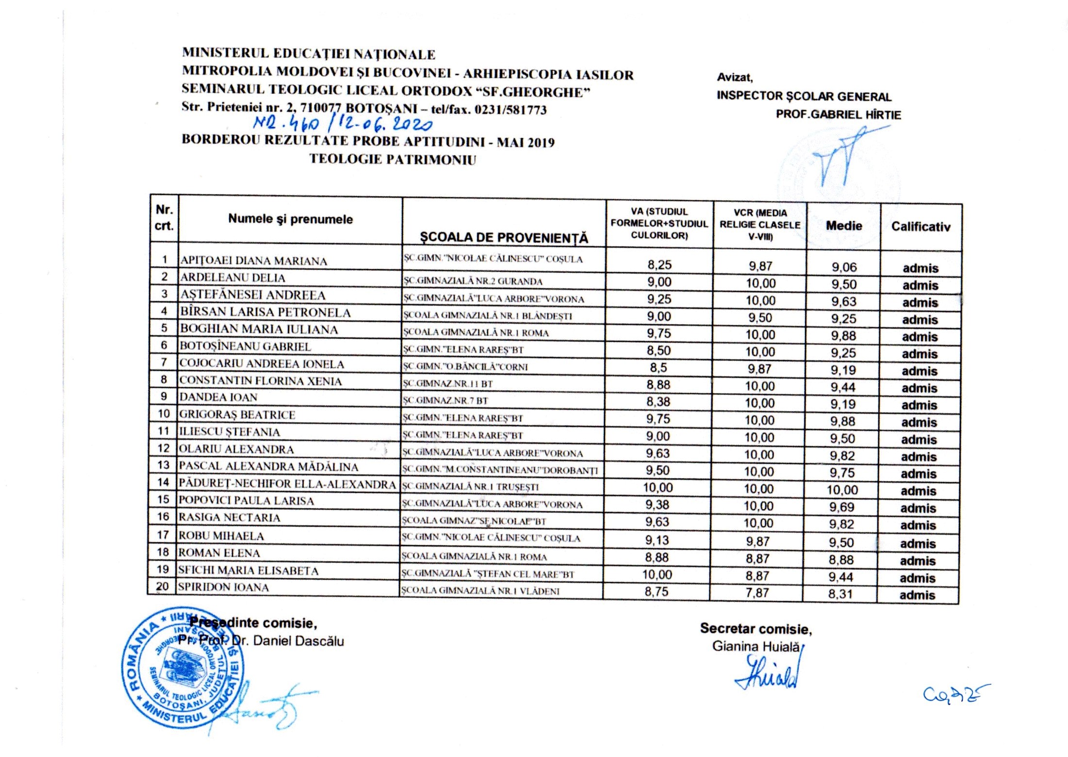 18 Iunie 2020 Postat în: Admitere AnteriorUrmător Rezultatele examenului de Admitere la Seminar, sesiunea iunie 2020. Documente atașate rezultate_aptitudini_-_teologie_pastorala_2020.pdf (321.48 KB) rezultate_aptitudini-teologie__patrimoniu_2020.pdf (349.36 KB)