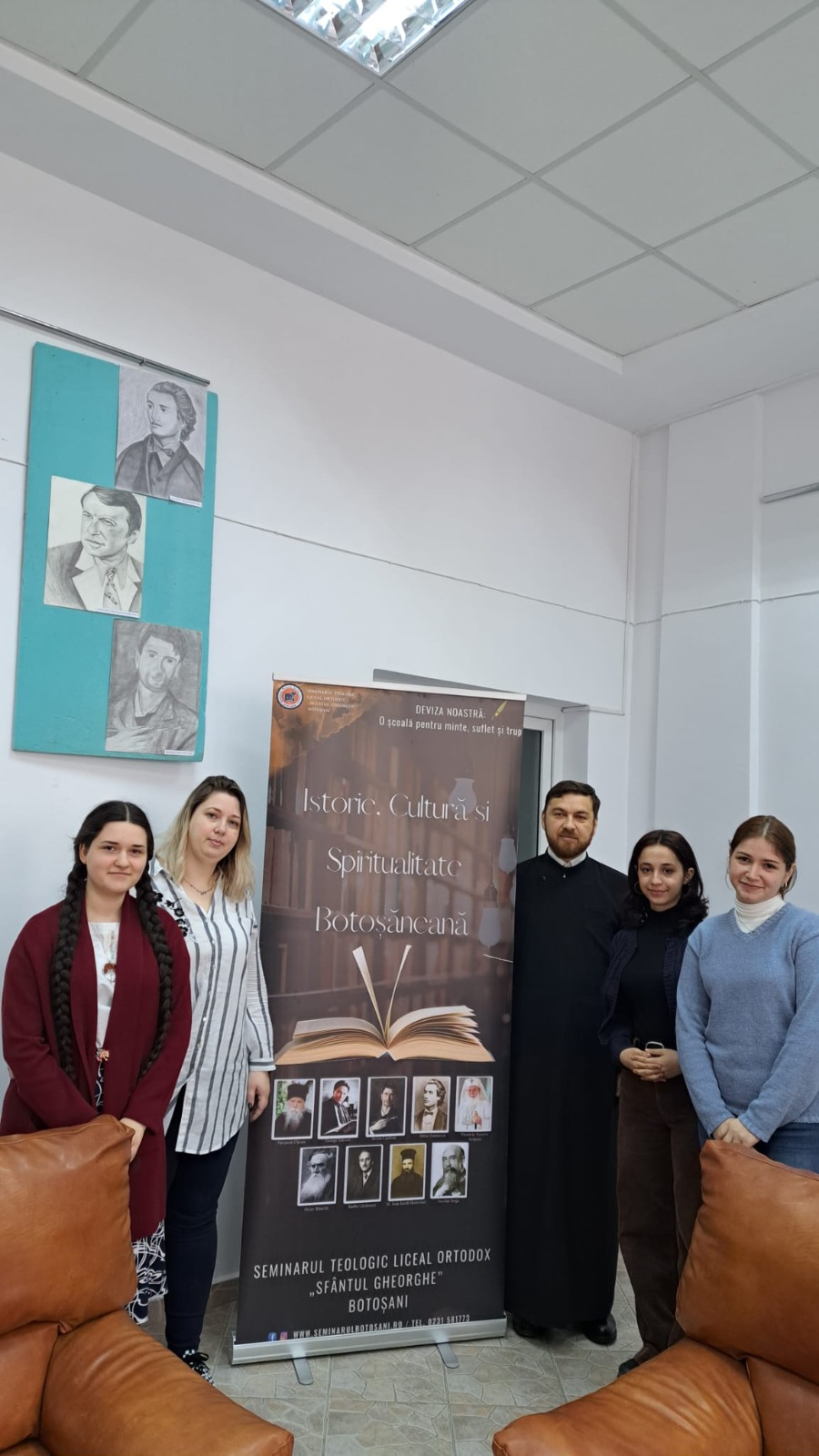 O altă etapă din cadrul Proiectului Județean „Istorie, Cultură și Spiritualitate Botoșăneană", inițiat de Seminarul Teologic Ortodox Liceal „Sf. Gheorghe" din Botoșani, a avut loc în aceste zile la Casa Corpului Didactic Botoșani. Astfel, elevii școlii noastre coordonați de profesorii Ioana Șcarlii și Cătălina Fălcoianu, au realizat icoane ale sfinților și tablouri ale personalităților locale, peisaje, obiective istorice, culturale și spirituale din zona noastră. Lucrările au fost pictate pe pânză, lemn și hârtie și au fost expuse, miercuri, 15 martie la Casa Corpului Didactic Botoșani, sub denumirea generică de „Plai de Dor”. Totodată, un grup vocal mixt din cadrul Seminarului Teologic Ortodox Liceal „Sf. Gheorghe" Botoșani, a prezentat un scurt program artistic de promovare a spațiului cultural botoșănean, în prezența unei delegații din Franța, care a rămas profund impresionată de frumusețea, și bogăția noastră culturală, istorică și spirituală, dar și de misiunea complexă pe care Seminarul Botoșănean o împlinește la nivel local, național și internațional.