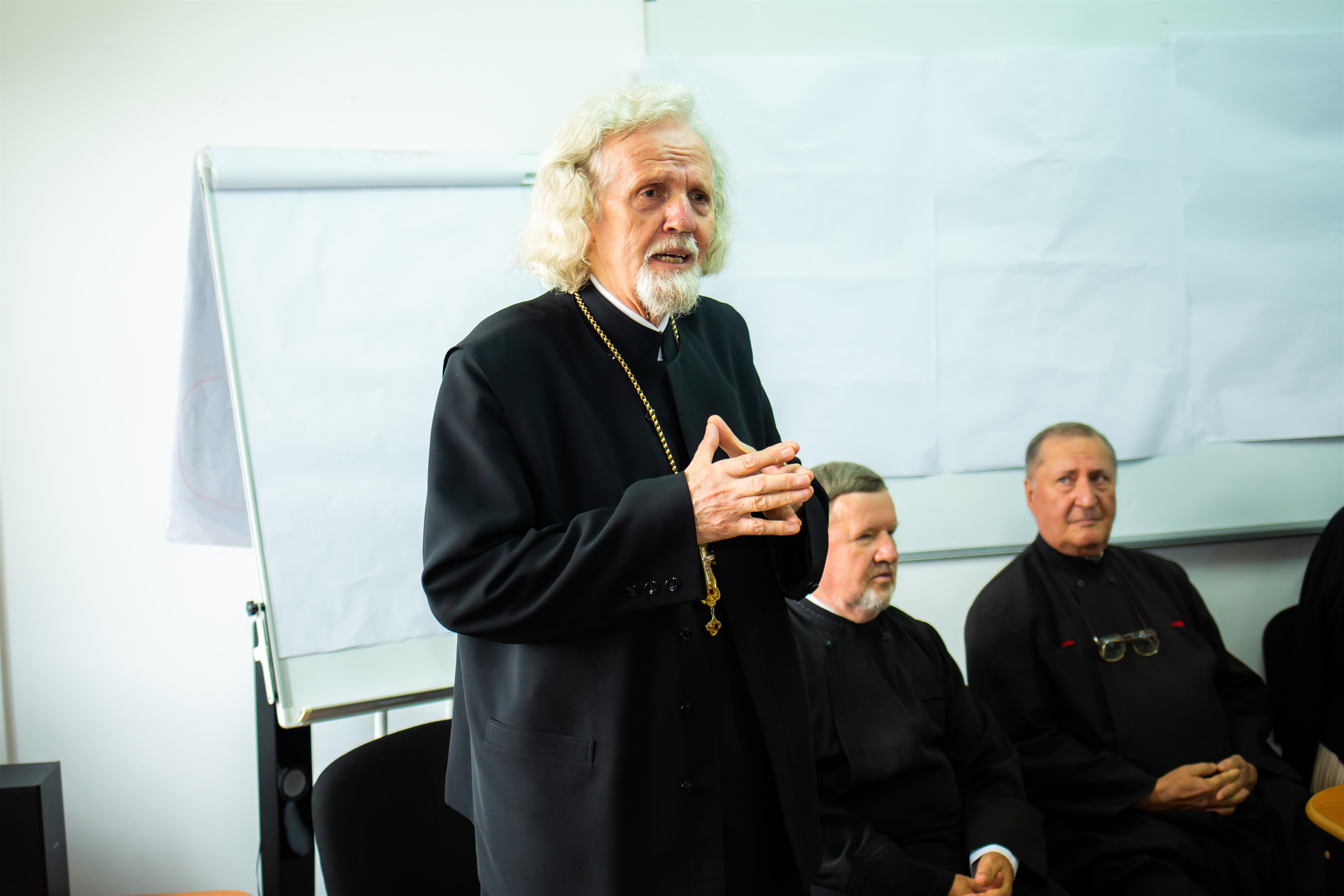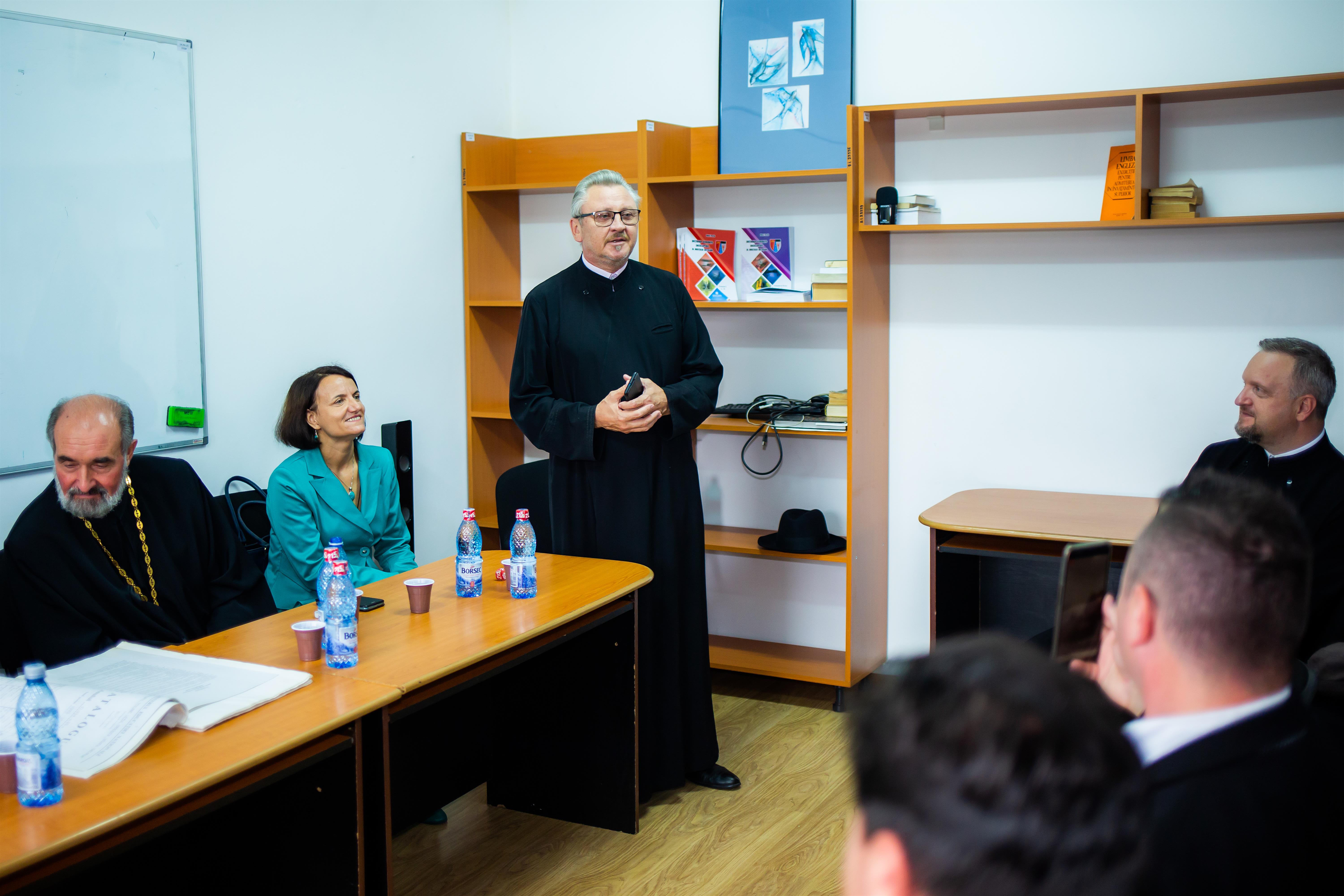 Întâlnirea a debutat încă de la primele ore ale dimineții cu săvârșirea Sfintei Liturghii, în Capela seminarului și pomenirea colegului Preot Ionuț Rusu, mutat la cele veșnice.